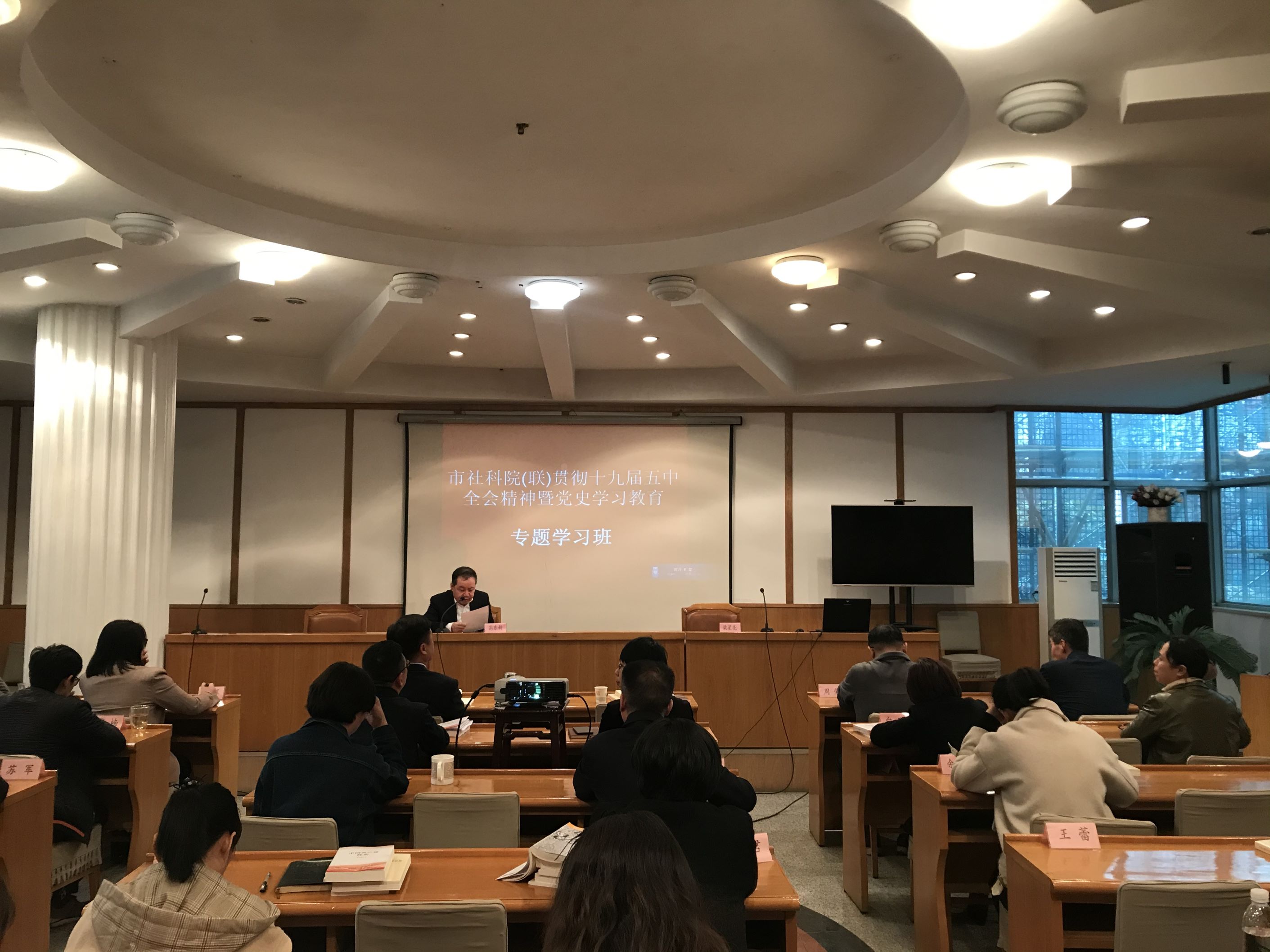 3月24-26日,市社科院(联)组织开展了为期三天的“党史教育学习班”。学习班通过党组理论中心组学习、专家辅导、支部主题学习、个人自学等形式进行。院(联)邀请西北大学延安精神与党的建设研究院院长、教授梁星亮和市委党校党史党建教研部主任、副教授刘晓芬进行了两场题为《中共中央在延安十三年》《从党的发展历程看党的初心和使命》的辅导报告。党组理论学习中心组开展了两次专题学习活动,分别以学习习近平《论中国共产党历史》和《习近平新时代中国特色社会主义思想学习问答》为主题,由党组班子成员和中层领导干部分别领学,并进行了学习交流,取得了良好的学习效果。各支部组织专题学习,院(联)领导班子成员参与指导。