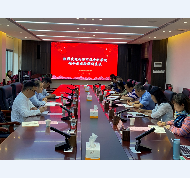 2021年9月17日,市社科院党组书记、院长高东新带领科研处全体人员赴西安财经大学调研,西安财经大学副校长吴旺延,科研处全体人员和省部级科研基地的负责人参加座谈。