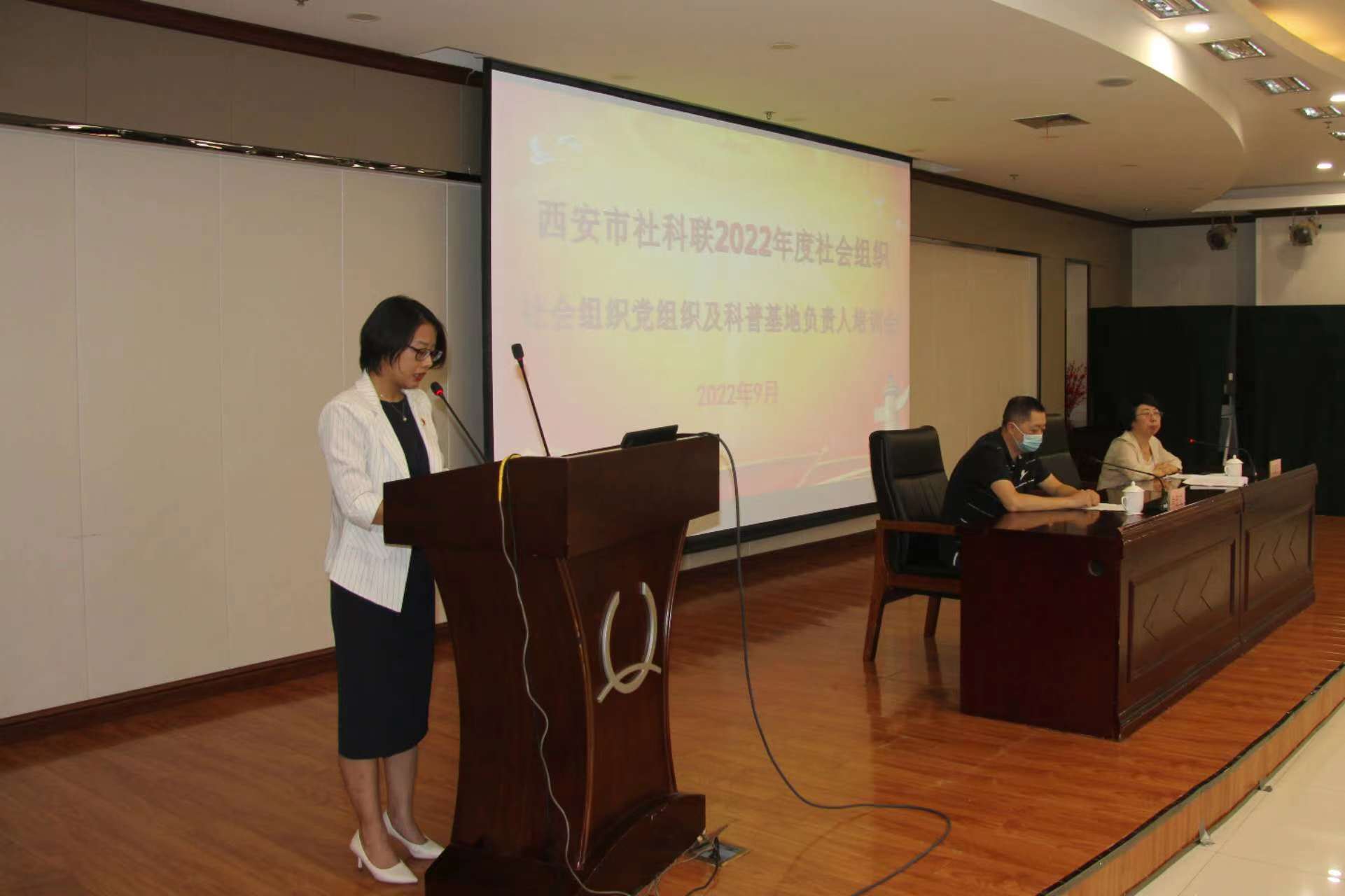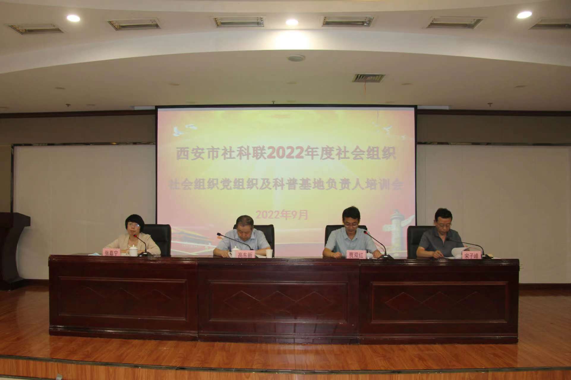2022年9月9日,西安市社科联(院)在陕西社会主义学院教育培训服务中心召开了2022年度社会组织、社会组织党组织及社科普及基地负责人培训会。市社科联(院)党组书记、院长高东新、市委宣传部理论处处长贾双红、市社科联(院)机关总支专职副书记肖宏立、市民政局社会组织管理局三级调研员宋子峰参加了会议。会议由市社科联(院)学会处处长张嘉宁主持。