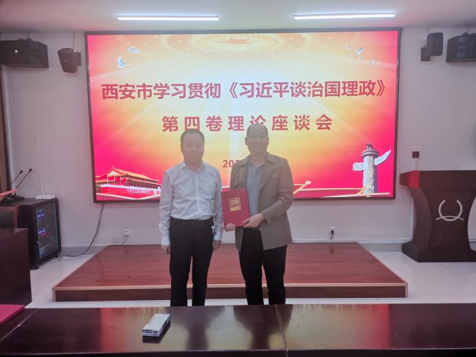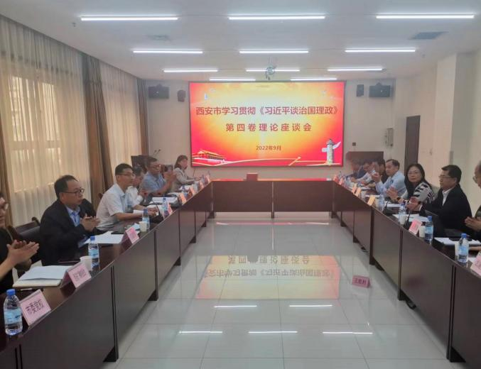 2022年9月29日上午,由中共西安市委宣传部、西安市社会科学院(联)联合主办的“西安市学习贯彻《习近平谈治国理政》第四卷理论座谈会”在陕西社会主义学院(长安雅集酒店)第一会议室举行。来自西北政法大学、陕西省社会科学院、西北大学等高校、研究机构的7位专家,以及西安市委政研室、西安市委网信办、西安市教育局、西安报业集团、西安广播电视台、西安市市属高校等单位的领导参加了会议。