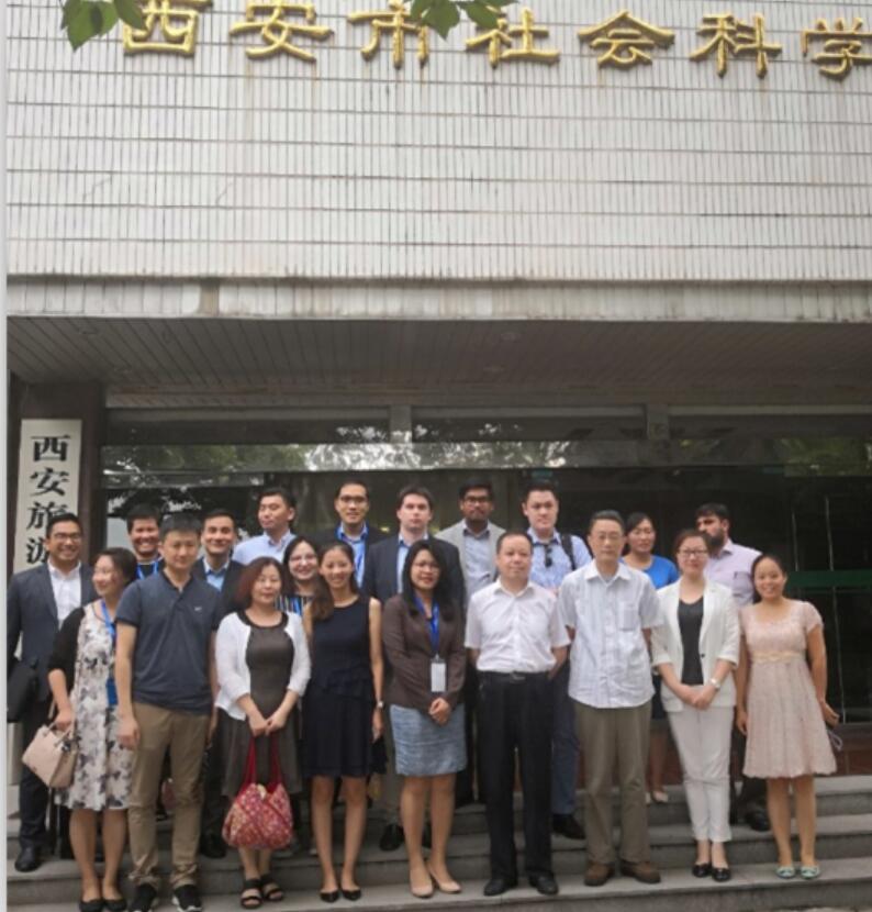 2018年8月17日下午,西安市社会科学院(西安市社会科学界联合会)按照市政府安排,在院(联)学术会议厅接待了中国国际问题研究院一行20多位外国友好人士,并围绕“‘一带一路’倡议和西安的政策举措”等相关议题开展交流、研讨。主要参会人员有:西安市社科院(社科联)副院长(副主席)高东新、西安市社科院(社科联)经济学所所长程丽辉和全所人员、西安市外事侨务办公室领导和工作人员,以及中国国际问题研究院秘书长杨易、亚太安全合作理事会中国委员会秘书处处长邢羿和来自巴基斯坦、菲律宾、老挝、新加坡、蒙古、越南、日本、韩国等十余个国家和地区的专家学者?;嵋槭紫扔墒型馇劝旖樯芪靼彩惺星榧岸酝饨涣髑榭?,接着由我院(联)高东新副院长(副主席)进行了题为“一带一路”与大西安创新发展的主旨演讲,由市外侨办刘茜同志进行交传工作,高东新副院长(副主席)图文并茂的演讲获得了国际专家学者的一致好评。最后,参会嘉宾就西安“一带一路”倡议举措、外商投资、西安与亚太国家交流合作等相关议题进行提问,高东新副院长(副主席)一一做出解答。研讨会现场气氛热烈,与会的国际专家学者均表示收获很多,研讨会取得了圆满成功。