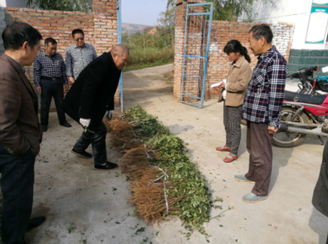 2017年10月26日下午市社科院王院长、张院长、蔡主任来蓝田县厚镇江流沟村检查指导扶贫工作,并为村民免费发放优质花椒苗树。西安市社会科学院驻村帮扶工作队和脱贫攻坚工作队从韩城市花椒局购置42000株优质大红袍花椒树苗,免费发放给贫困户和8个小组村民,使花椒种植面积新增700亩,总面积达到千亩以上,有力支持了江流沟村集体经济发展,力争做大做强做活花椒种植产业和养牛产业!