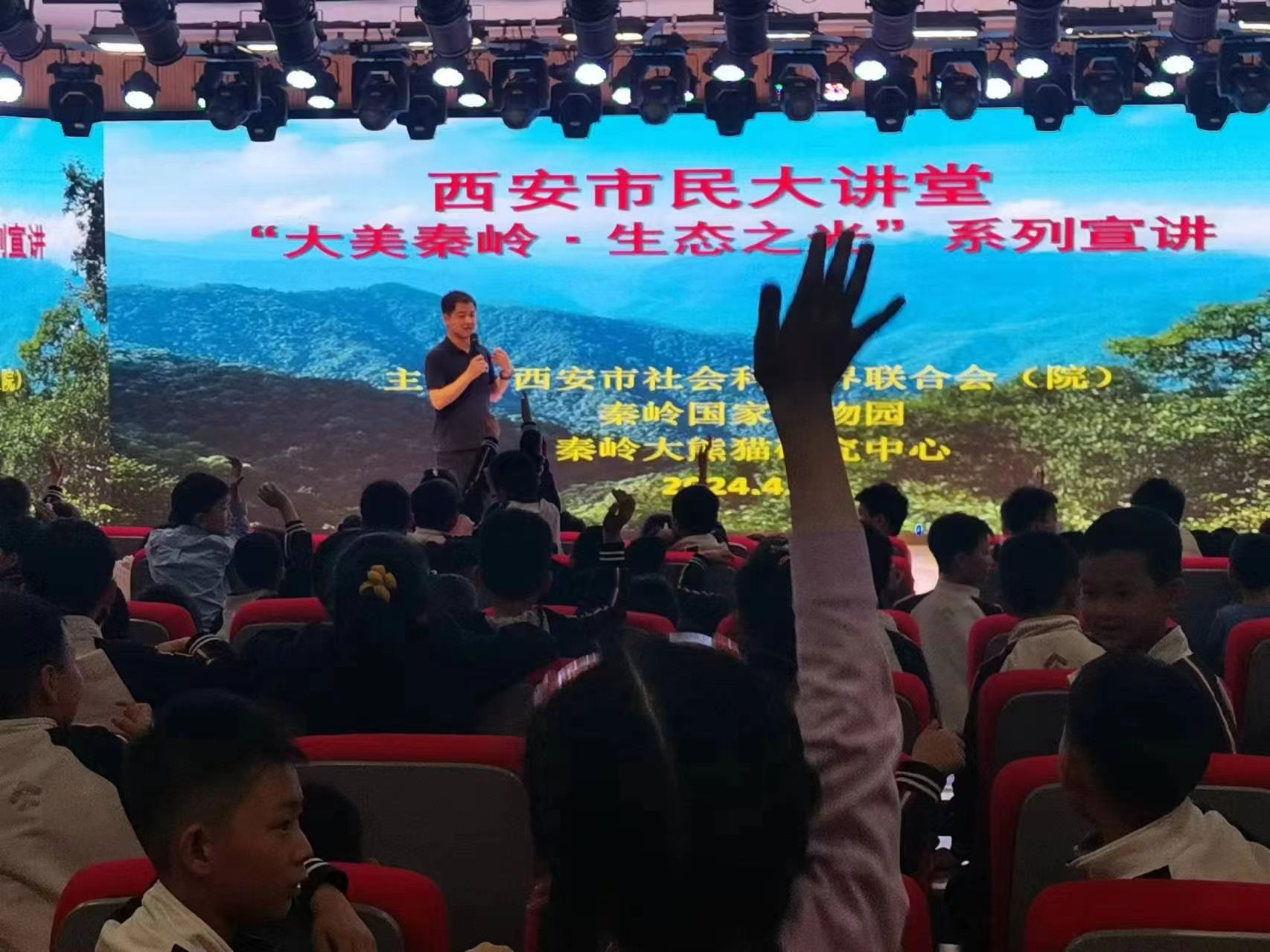为了进一步加强秦岭生态环境保护,切实做好秦岭野生动植物的?;すぷ?,2024年4月10日下午,由西安市社会科学界联合会(西安市社会科学院)、秦岭国家植物园、秦岭大熊猫研究中心(陕西省珍稀野生动物救护基地)联合举办的西安市民大讲堂——“大美秦岭·生态之光”系列宣讲走进西安市航天基地第四小学,为270余名师生上了一堂精彩生动的秦岭动植物?;た?。