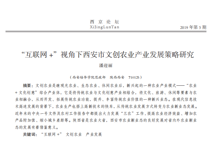 “互联网+”视角下西安市文创农业产业发展策略研究