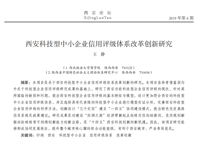 西安科技型中小企业信用评级体系改革创新研究