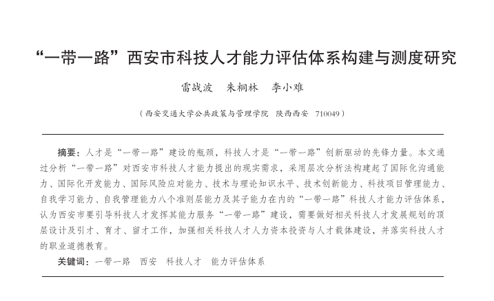 “一带一路”西安市科技人才能力评估体系构建与测度研究