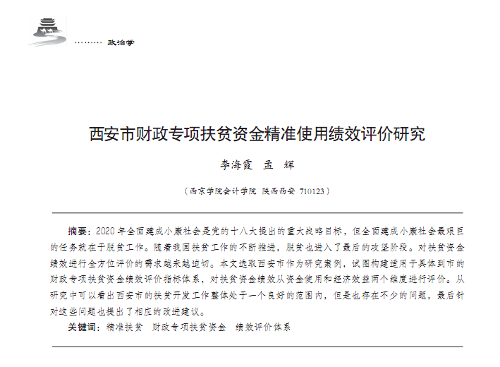 西安市财政专项扶贫资金精准使用绩效评价研究