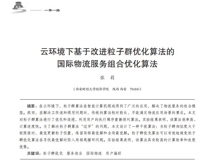 云环境下基于改进粒子群优化算法的国际物流服务组合优化算法