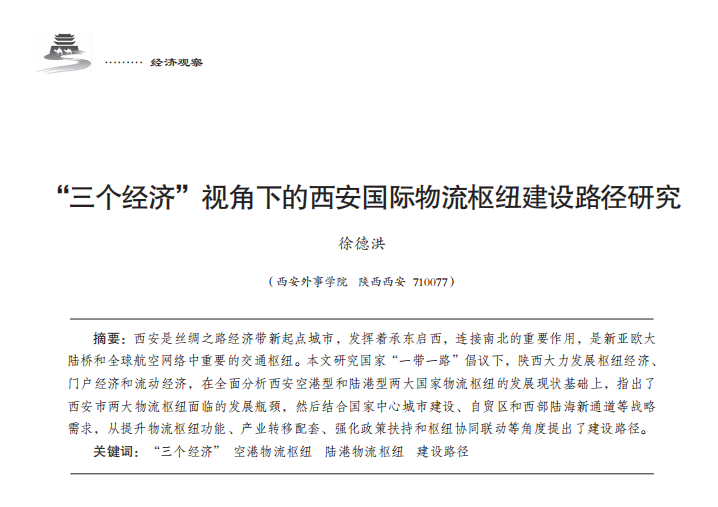 “三个经济”视角下的西安国际物流枢纽建设路径研究