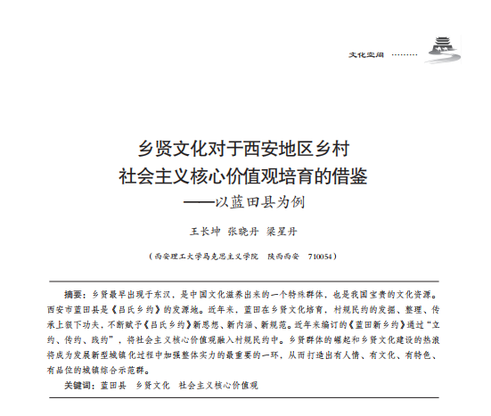 乡贤文化对于西安地区乡村社会主义核心价值观培育的借鉴——以蓝田县为例