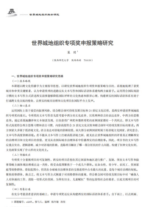世界城地组织专项奖申报策略研究