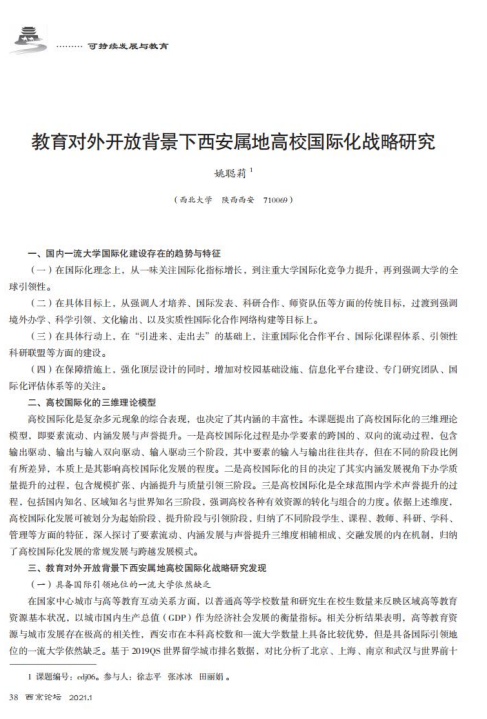 教育对外开放背景下西安属地高校国际化战略研究