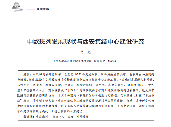 中欧班列发展现状与西安集结中心建设研究