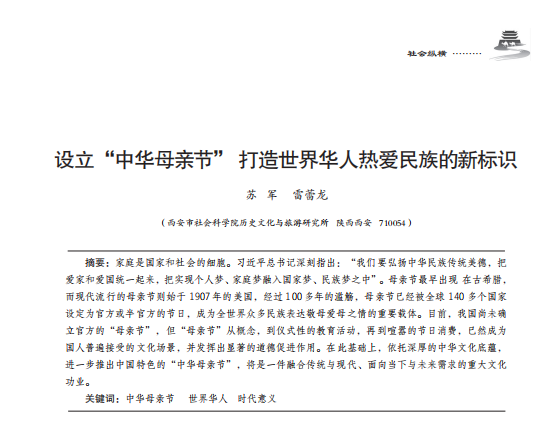 设立“中华母亲节”打造世界华人热爱民族的新标识