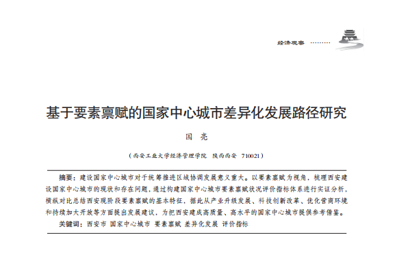 基于要素禀赋的国家中心城市差异化发展路径研究