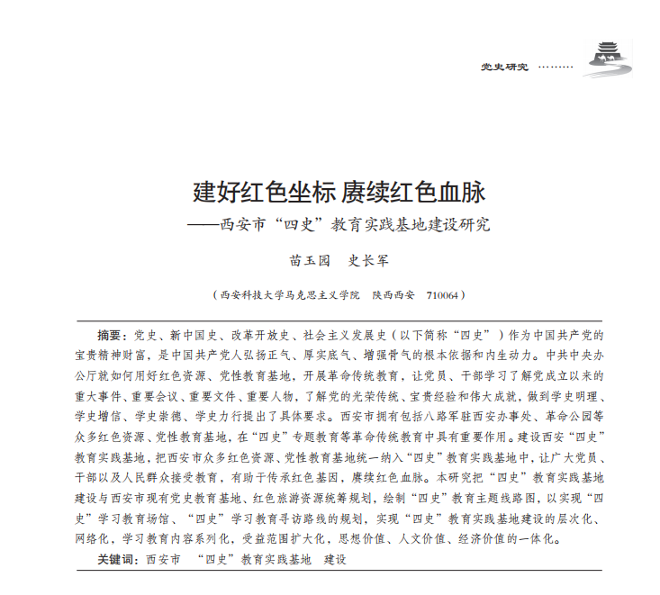 建好红色坐标 赓续红色血脉——西安市“四史”教育实践基地建设研究