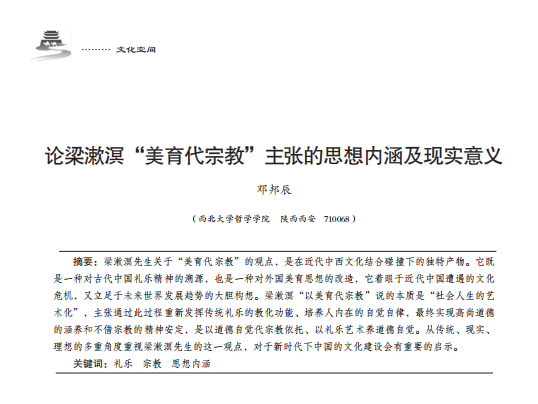 论梁漱溟“美育代宗教”主张的思想内涵及现实意义