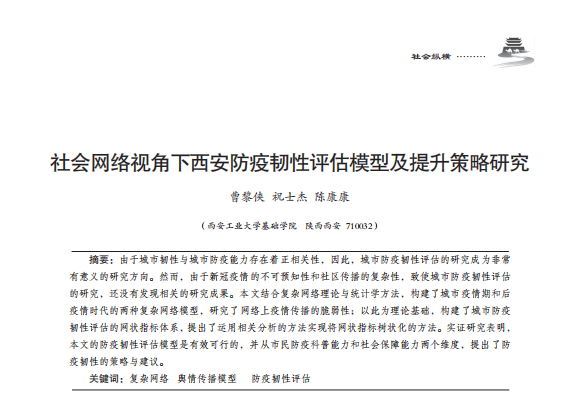 社会网络视角下西安防疫韧性评估模型及提升策略研究