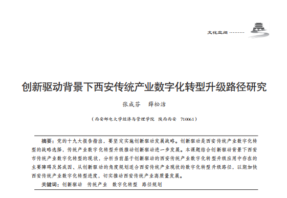 创新驱动背景下西安传统产业数字化转型升级路径研究
