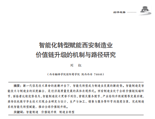 智能化转型赋能西安制造业价值链升级的机制与路径研究
