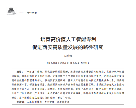 培育高价值人工智能专利促进西安高质量发展的路径研究