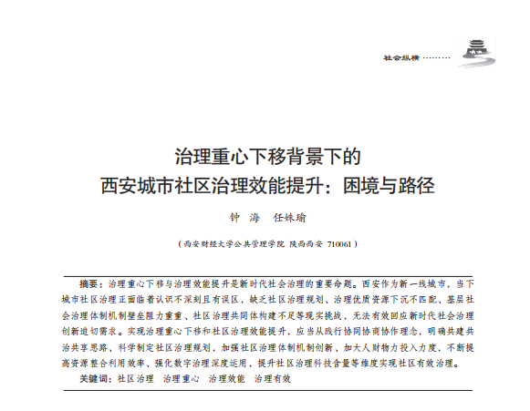 治理重心下移背景下的西安城市社区治理效能提升:困境与路径