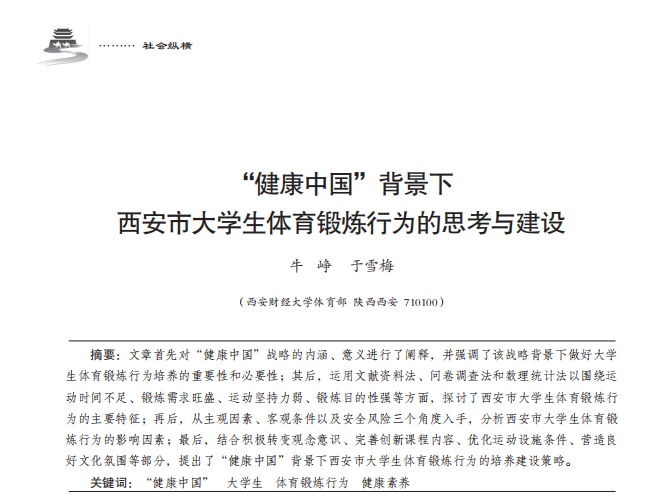 “健康中国”背景下西安市大学生体育锻炼行为的思考与建设