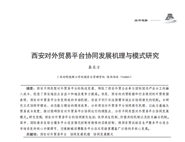 西安对外贸易平台协同发展机理与模式研究