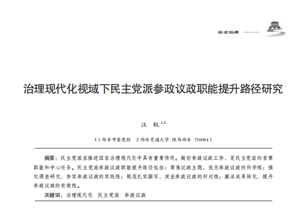 治理现代化视域下民主党派参政议政职能提升路径研究
