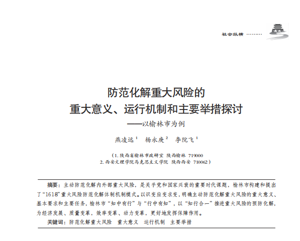 防范化解重大风险的重大意义、运行机制和主要举措探讨——以榆林市为例