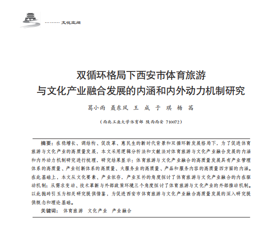 双循环格局下西安市体育旅游与文化产业融合发展的内涵和内外动力机制研究