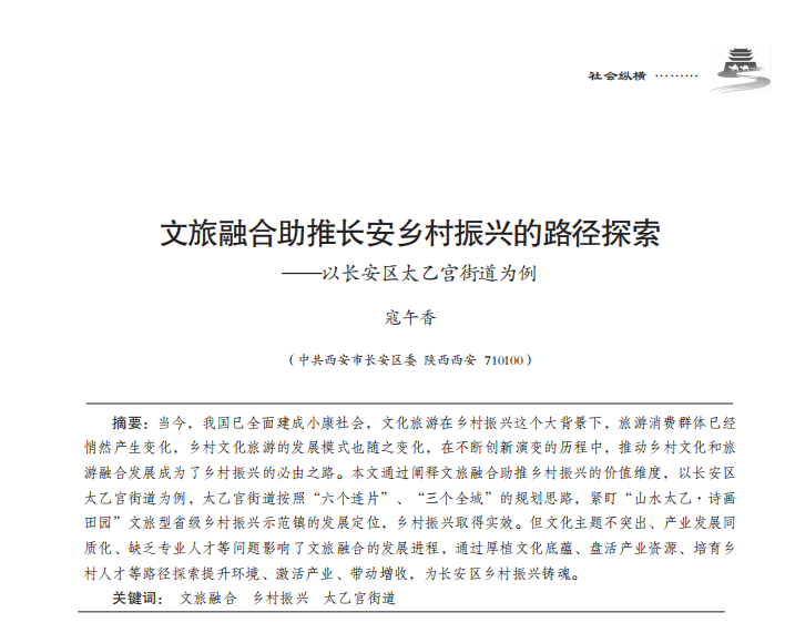 文旅融合助推长安乡村振兴的路径探索---以长安区太乙宫街道为例