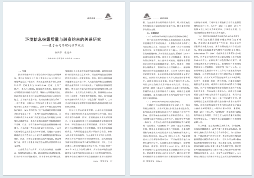 环境信息披露质量与融资约束的关系研究——基于公司治理的调节效应