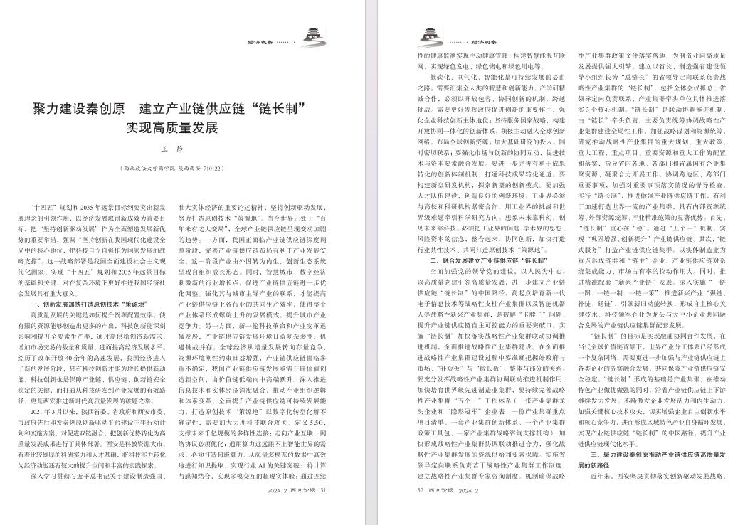 聚力建设秦创原 建立产业链供应链“炼长制”实现高质量发展