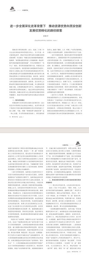 进一步全面深化改革背景下 推动资源优势向西安创新发展优势转换的路径探索