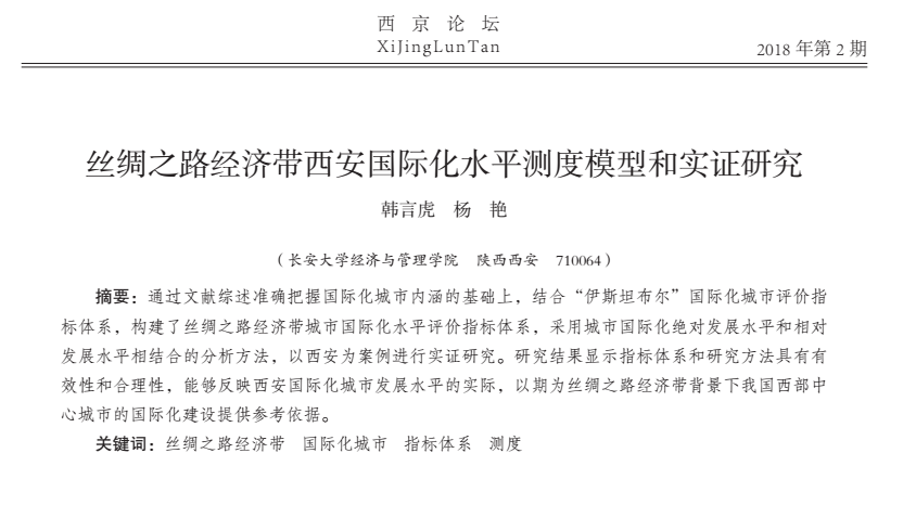 丝绸之路经济带西安国际化水平测度模型和实证研究