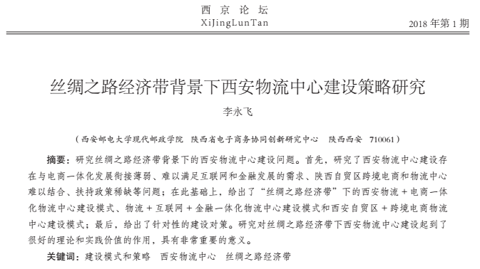 丝绸之路经济带背景下西安物流中心建设策略研究