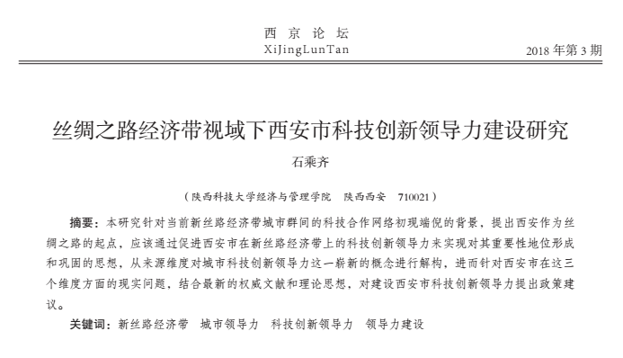 丝绸之路经济带视域下西安市科技创新领导力建设研究