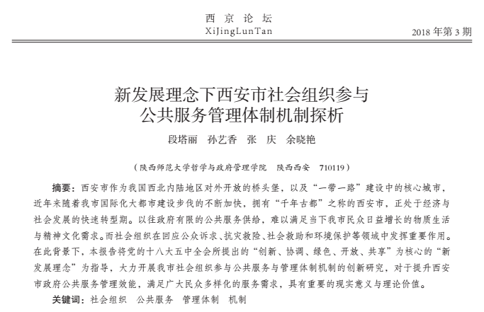 新发展理念下西安市社会组织参与公共服务管理体制机制探析