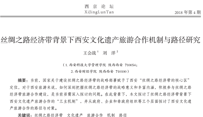 丝绸之路经济带背景下西安文化遗产旅游合作机制与路径研究