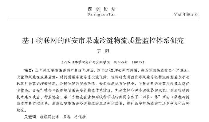 基于物联网的西安市果蔬冷链物流质量监控体系研究