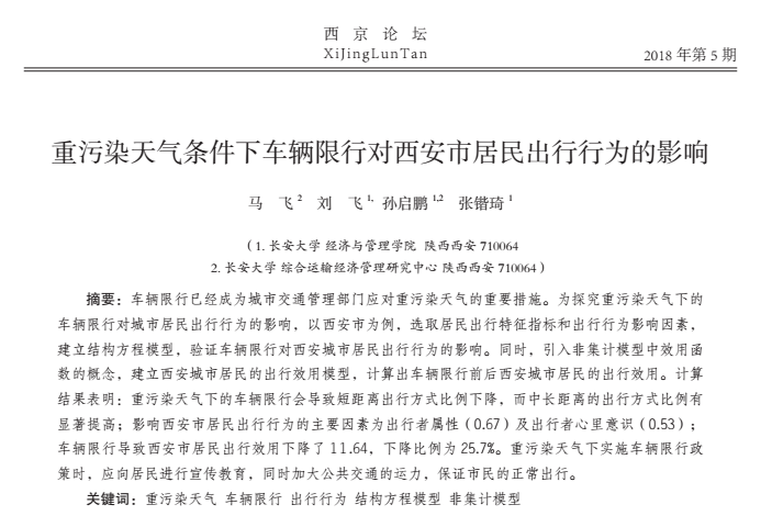 重污染天气条件下车辆限行对西安市居民出行行为的影响