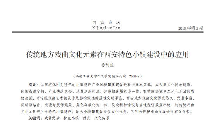传统地方戏曲文化元素在西安特色小镇建设中的应用