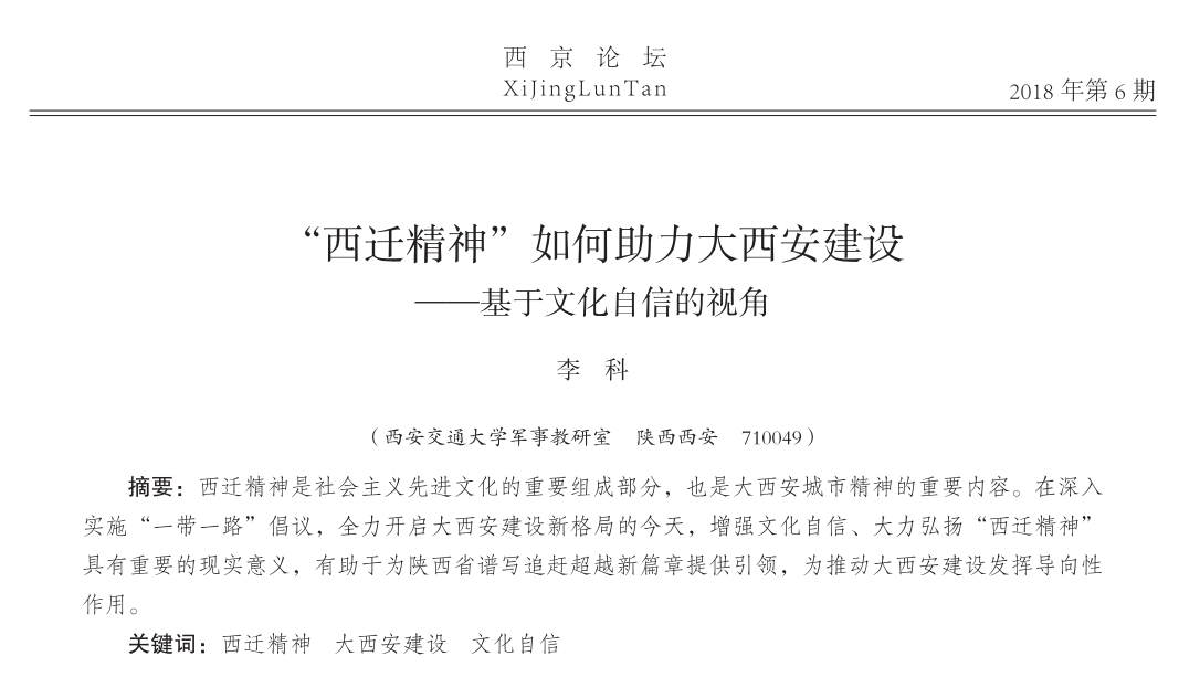 “西迁精神”如何助力大西安建设——基于文化自信视角