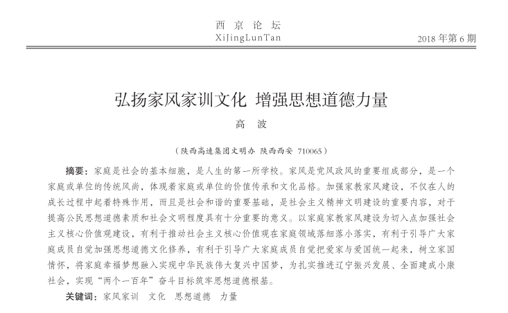 弘扬家风家训文化增强思想道德力量