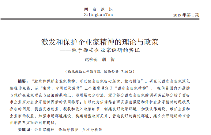 激发和保护企业家精神的理论与政策------源于西安企业家调研的实证