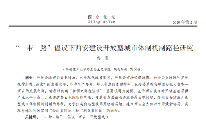 “一带一路”倡议下西安建设开放型城市体制机制路径研究
