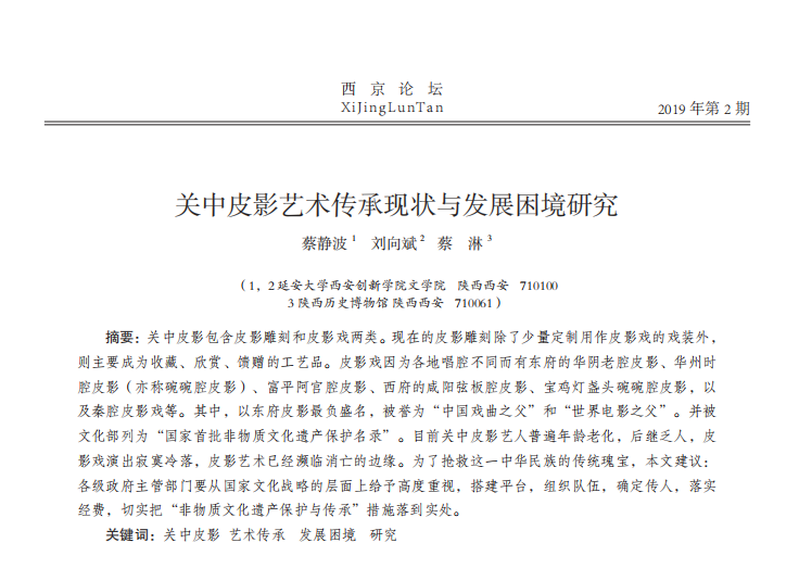 关中皮影艺术传承现状与发展困境研究