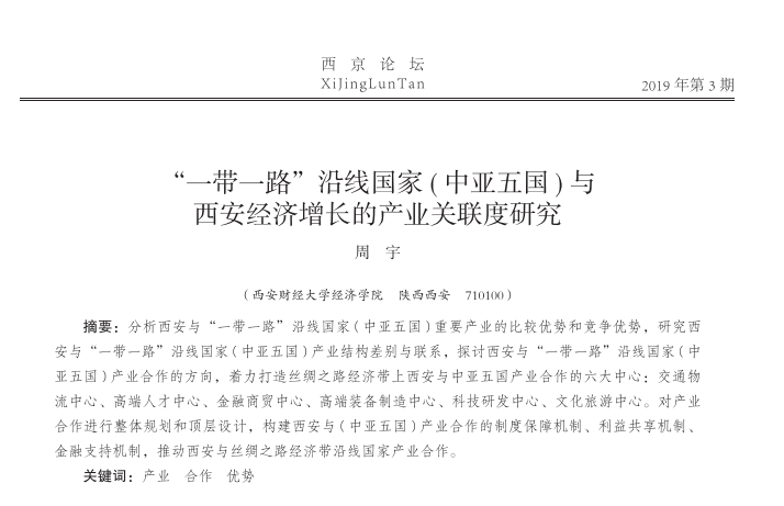 “一带一路”沿线国家(中亚五国)与西安经济增长的产业关联度研究
