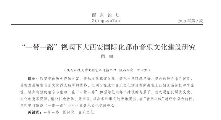“一带一路”视阈下大西安国际化都市音乐文化建设研究